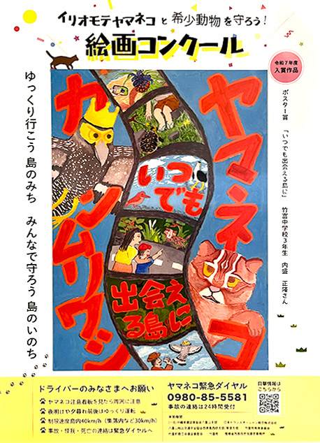 絵画コンクール作品展 開催中!2026年2月17日/カテゴリ: ゆがふ館だより 毎年恒例の「イリオモテヤマネコと希少動物を守ろう!」絵画コンクール。テーマは、「ゆっくり行こう、島のみち。みんなで守ろう、島のいのち」。竹富町内の小中学生が応募してくれた、素敵な作品たちが竹富島にもやってきました。現在かりゆし館で、開催中です。かりゆし館へお立ち寄りの際に、是非ご覧ください。 〇令和7年度「イリオモテヤマネコと希少動物を守ろう!」絵画コンクール作品展期間 2026年2月16日~2月25日場所 竹富島かりゆし館 https://taketomijima.jp/wp/wp-content/uploads/2026/02/20260217-3.jpg 480 640 taketomi-jima http://taketomijima.jp/wp/wp-content/uploads/2024/02/img_logo.png taketomi-jima2026-02-17 11:04:352026-02-17 11:06:09絵画コンクール作品展 開催中!
