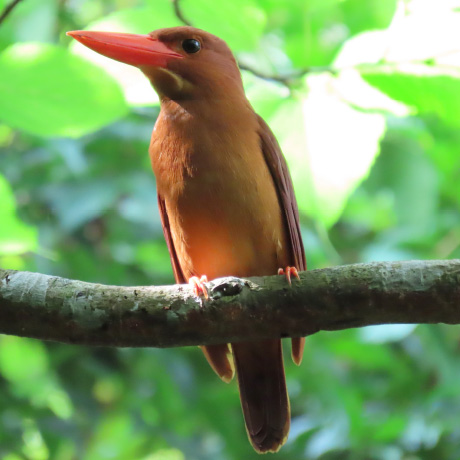 3月から4月ごろに南から飛来し、竹富島で夏を過ごす渡り鳥です。全身が鮮やかな赤色で、大きなくちばしが印象的です。「キョロロロロロ…」という美しい声で鳴き、森の中に響くその声は、夏の訪れを告げる音として島の人々にも親しまれています。