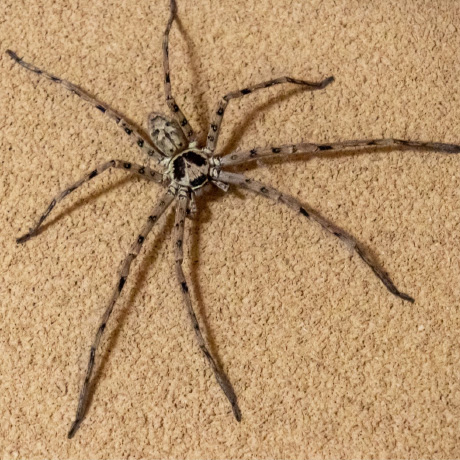 家屋や庭でよく見られる大型のクモで、脚を広げると10cm以上になることもあります。見た目は少し怖いですが、人間に害はなく、ゴキブリなどの害虫を食べる益虫として活躍しています。