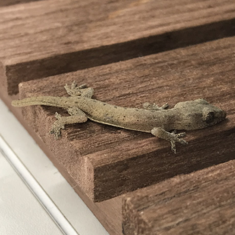 家屋や庭先でよく見られるヤモリで、顔のほお部分が黒いのが特徴です。夜になると自動販売機や民家の光に集まる昆虫を捕まえている姿を見ることができます。「キョキョキョキョ」という大きな声が夜の島に響きます。