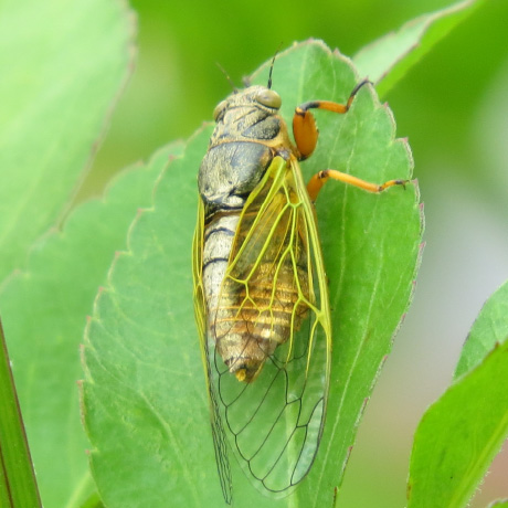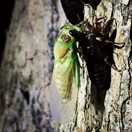 体長は約2〜3cmの小型のセミです。羽は透明で、先端が黒いことから「ツマグロゼミ」と呼ばれます。5月から7月頃まで「シーシー」と鳴き、春から初夏を彩る身近な生きものです。