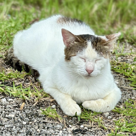 港や集落、海辺で自由気ままに生活しています。コンドイビーチには島の人が作ったネコ小屋が置かれているなど地域ネコとして島民にかわいがられながら生活しています。