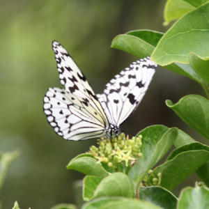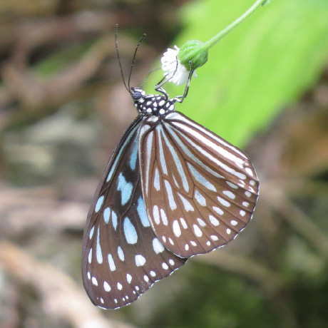 青緑色が透き通るように美しい羽が特徴の蝶々です。成虫は花の蜜を吸い、幼虫は特定の植物の葉を食べて成長します。渡りはせず、竹富島では一年を通して観察できます。