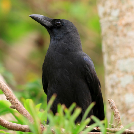 亜種のハシブトガラスよりクチバシが細く、体も一回り小さいのが特徴です。島内全域で見られ、とても賢いため、自転車のかごの荷物や海岸に置かれた荷物を漁ることもあります。島を訪れる際は荷物の放置に注意が必要です。