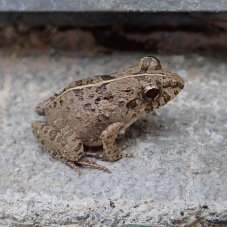 体長は4〜7cmほどの小型のカエルで、体色は茶色で、背中に白い筋が入った個体もいます。「クエークエー」と特徴的な鳴き声で鳴き、素早く動き回るのが特徴です。