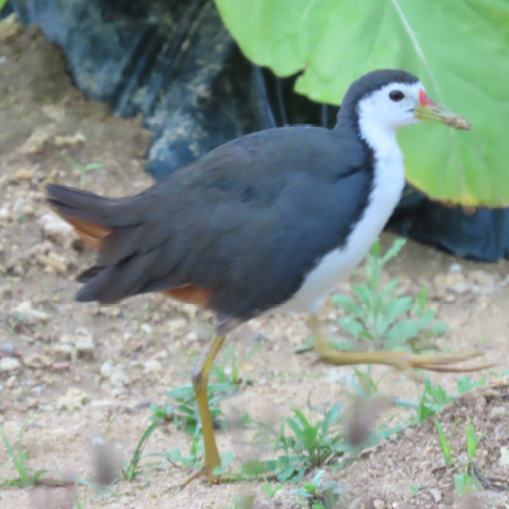 竹富島で一年中見られる留鳥で、名前のとおり白いお腹に、黄色いくちばしと足が特徴です。飛ぶのはあまり得意ではなく、草むらや道路を走る姿をよく見かけます。子育ての時期には、全身が真っ黒なヒナを連れて歩く姿も見られるかもしれません。島の暮らしのすぐそばにいる、親しみのある鳥です。