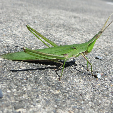 日本全国に広く分布するバッタで、竹富島でも草地や庭先で見られます。 体長は約5〜7cmで、大きくスマートな細長い体型が特徴です。 基本的には緑色をしていますが、黄褐色や緑と黄褐色が混じった個体もいます。