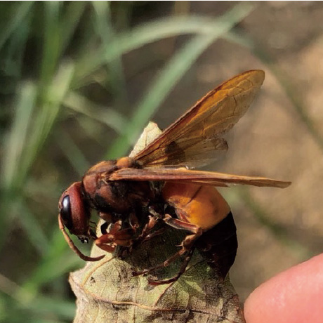八重山諸島に生息する大型のスズメバチで、体長は約2〜3cmほどです。 黒と黄色の模様が特徴で、攻撃性が強く、巣に近づくと刺されることがあるので、距離を保って観察しましょう。
