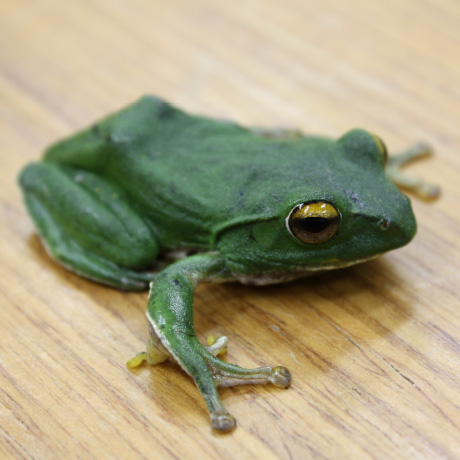 体長は4〜6cmほどの小型のカエルで、鮮やかな緑色の体が特徴です。「コロコロコロコロ」と可愛らしい声で鳴きます。