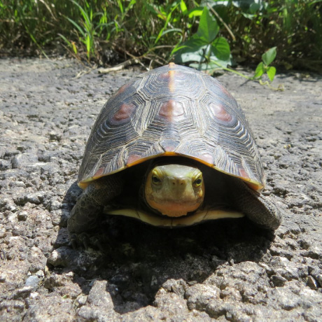 国の天然記念物に指定されているカメです。甲羅は丸く、黒や茶色の模様が特徴で、ゆっくりと歩きながら森の落ち葉や草、果実を食べます。竹富島では、森や庭先で見られることがあります。