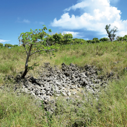 牛が一晩で積み上げたという伝承があるンブフル丘も数ある竹富島の史跡のひとつですが、この史跡も発掘調査が待たれます。ンブフル遺跡の年代が特定されることにより、小高い丘の南面に集落が広がる竹富島の集落景観のルーツのヒントが隠されているからです。