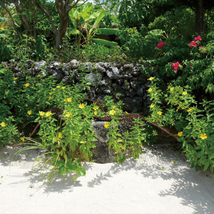 かつて美崎浜に港が置かれていた時に竹富島を離れる人、訪れる人が使っていた井戸です。井戸石も丁寧に積まれており、大切に使われていた跡が残ります。
